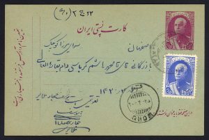 ” پاکت پستی از تهران به اصفهان با استفاده از تمبرهای مشروطه “