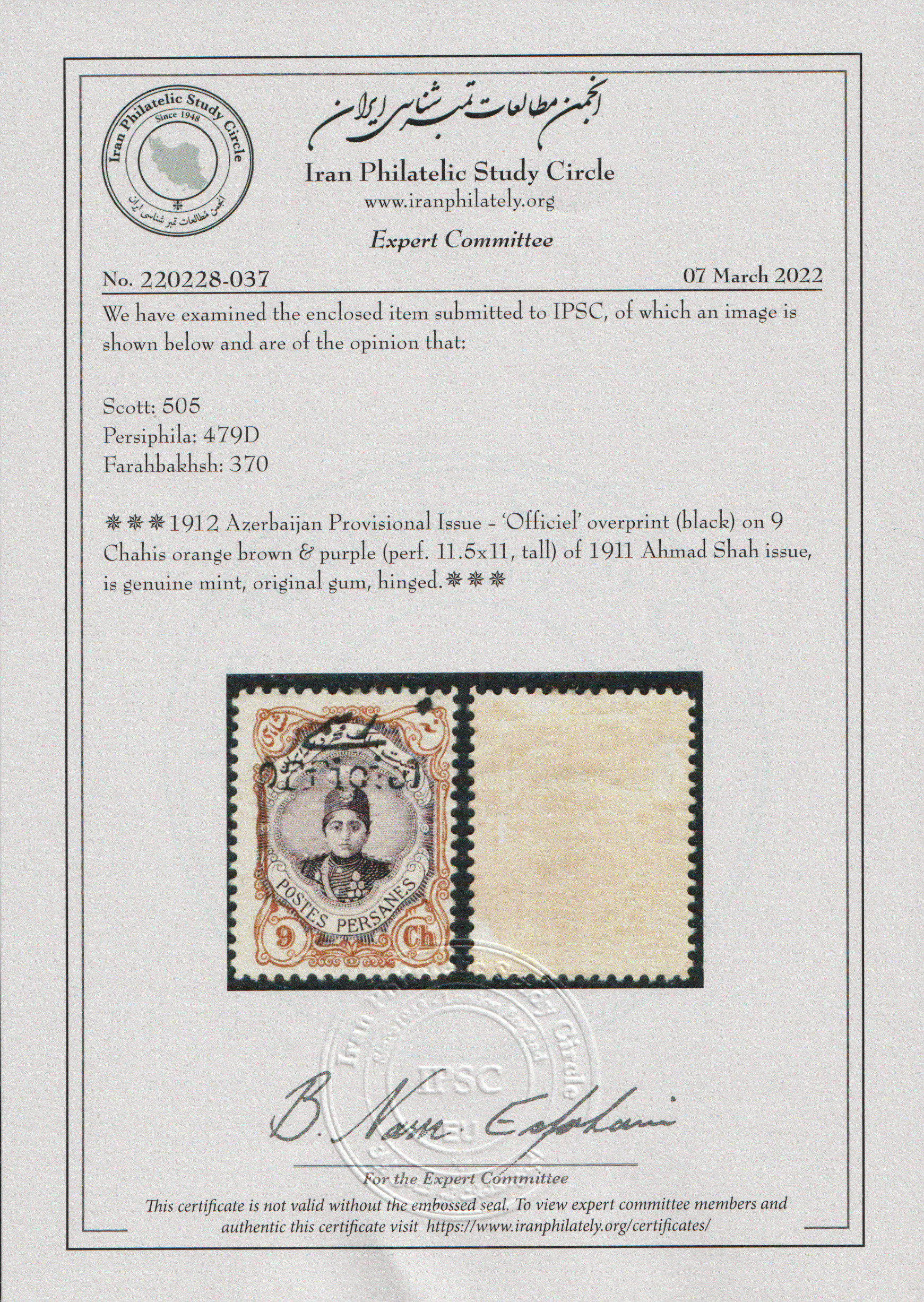 “۹ شاهی سری رسمی با سرتیفیکیت IPSC”