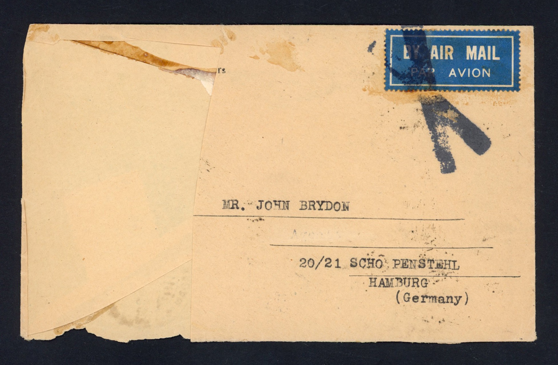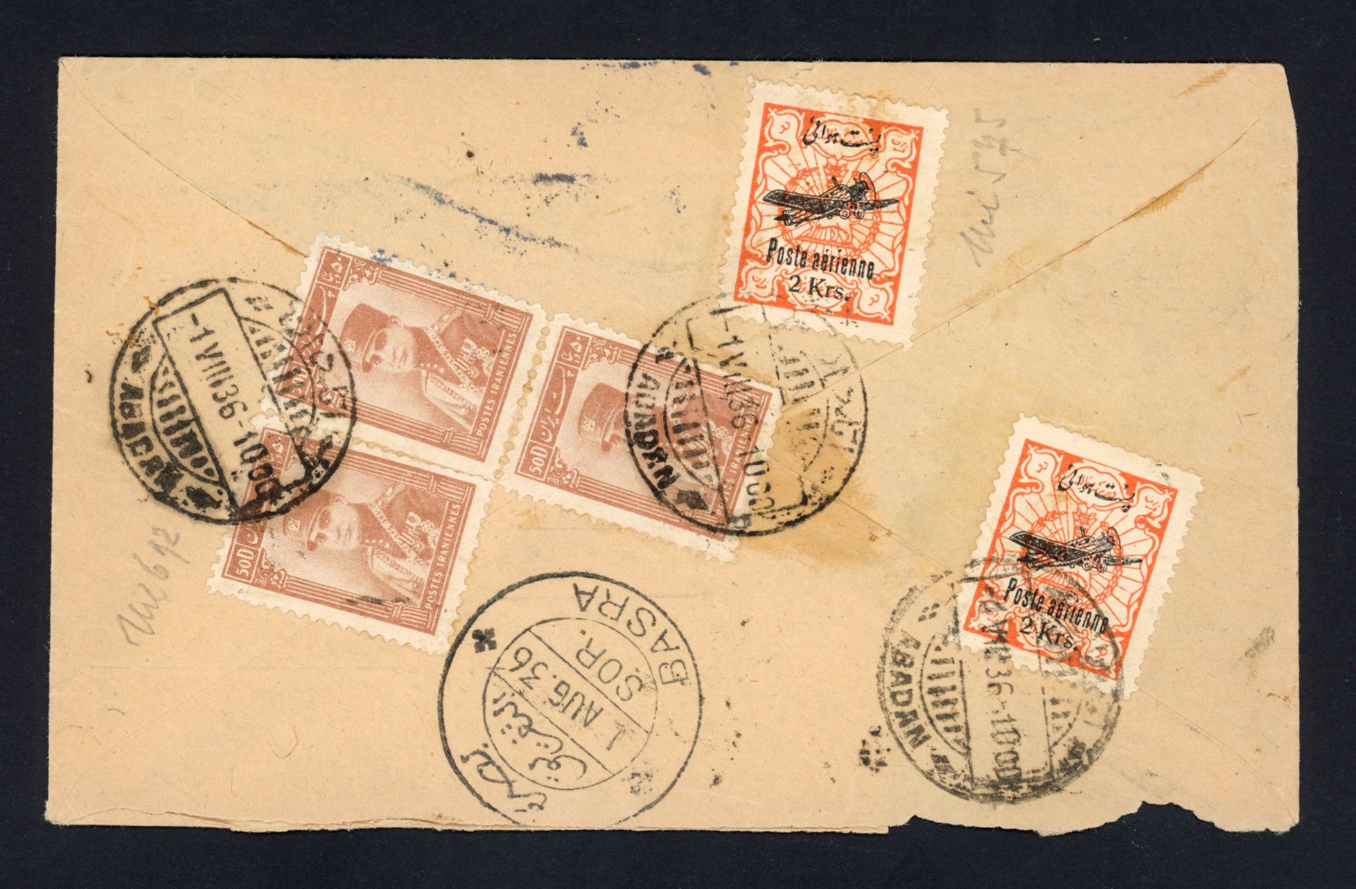 پاکت پست هوایی آبادان به آلمان از طریق بصره