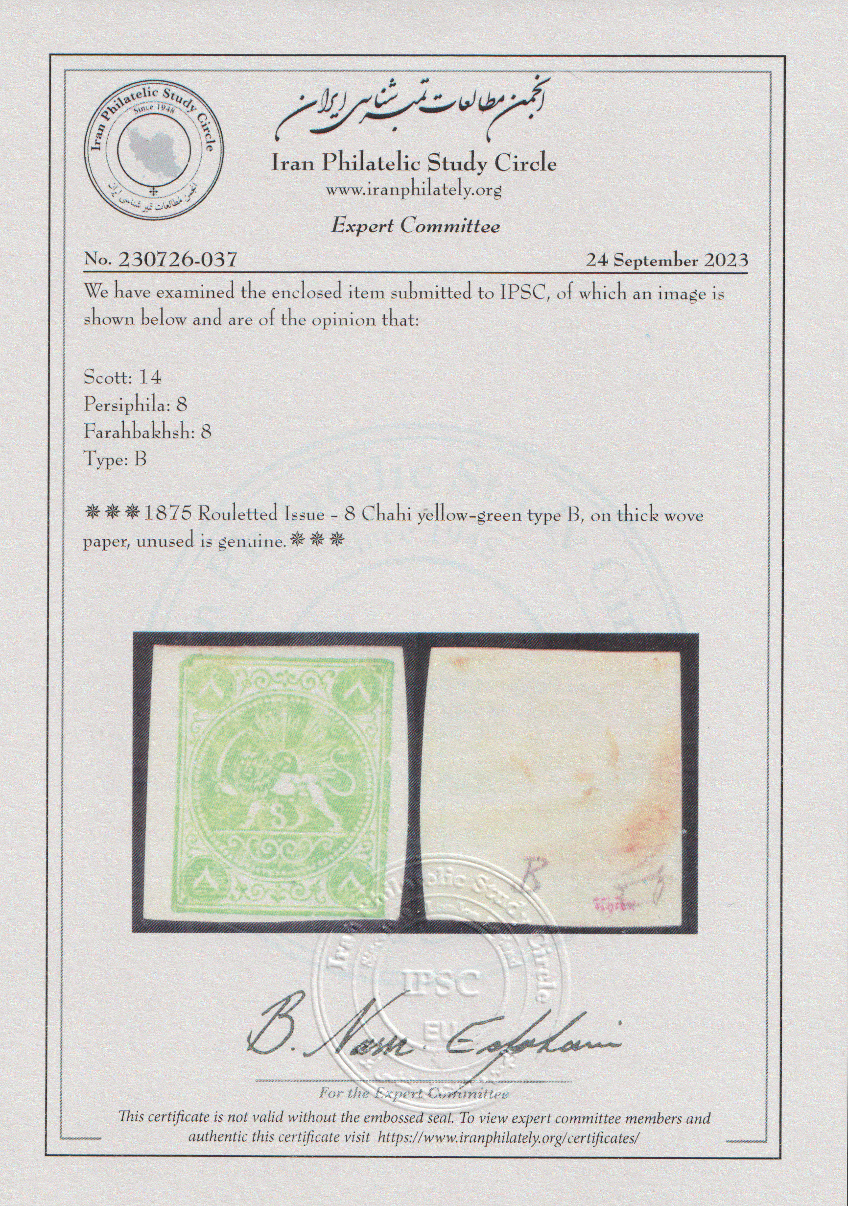 ” هشت شاهی کاردی مصرف نشده با سرتیفیکیت IPSC ”