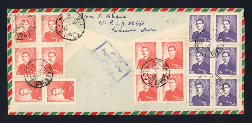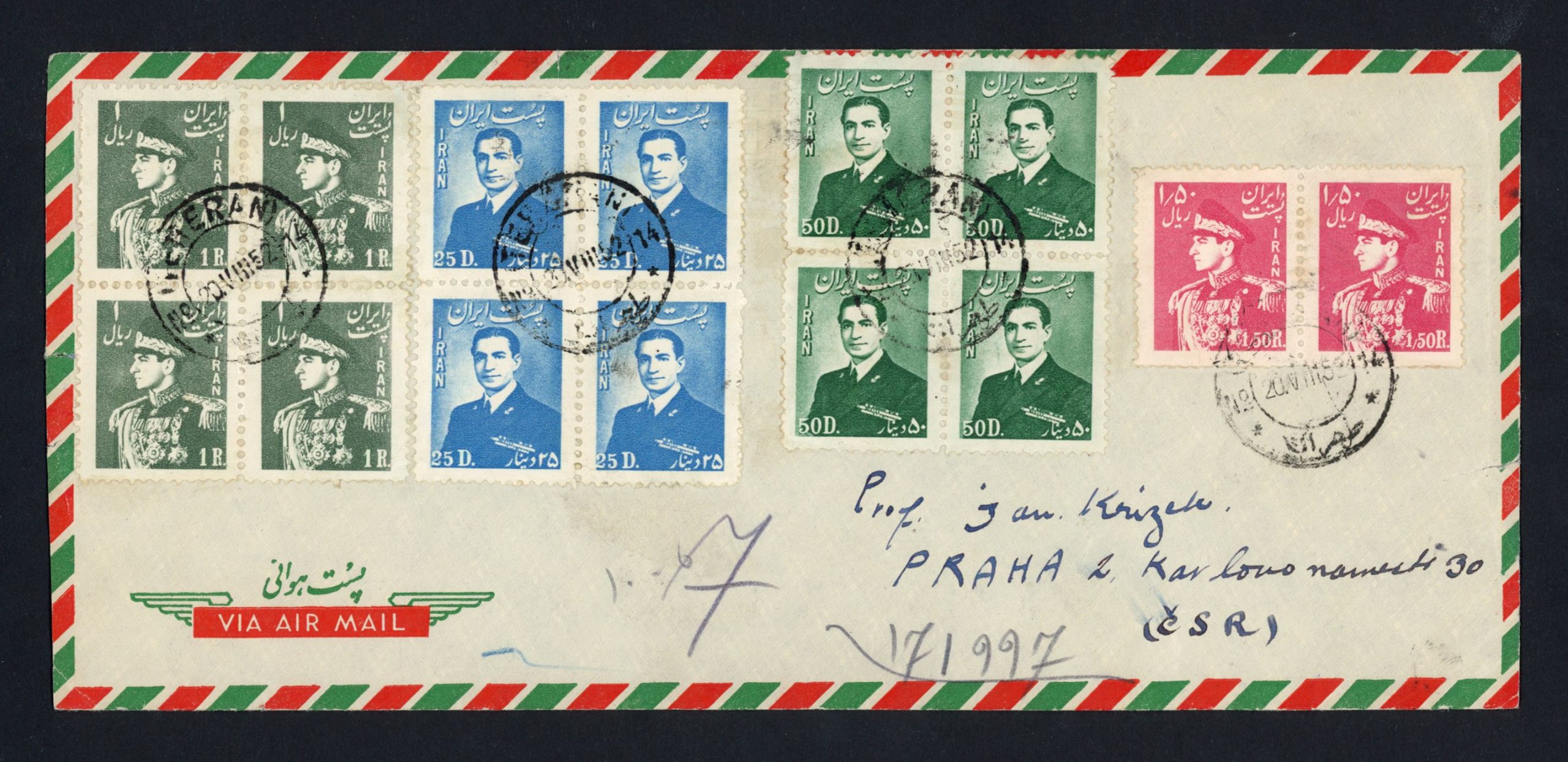 پاکت زیبای پست هوایی با تمبرهای بلوک سری چهارم پستی