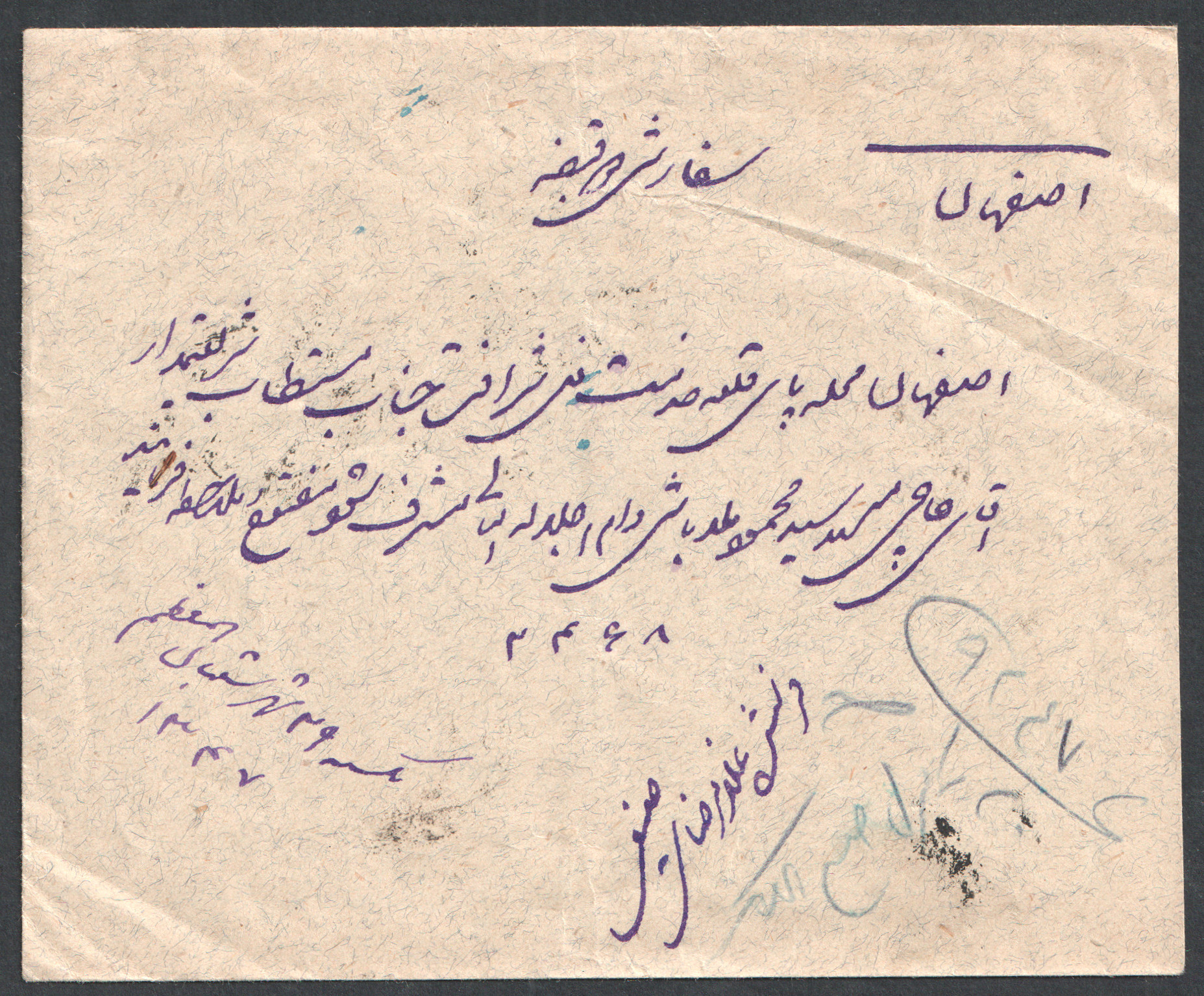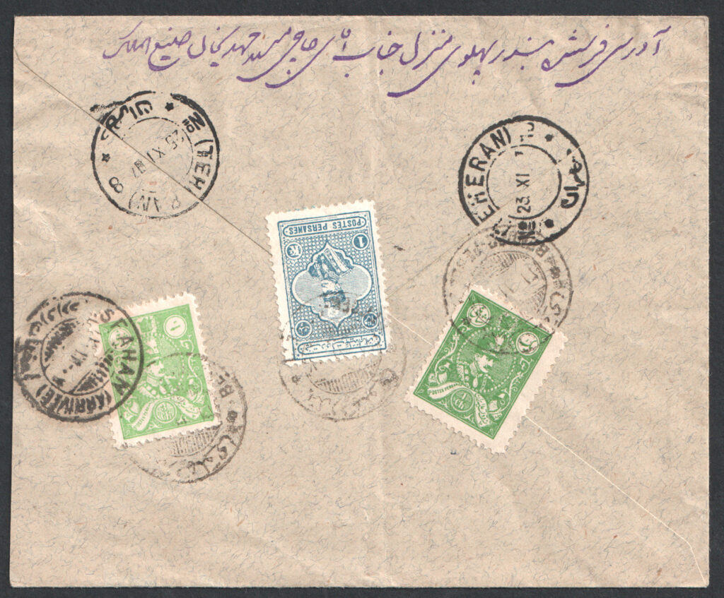 ” پاکت سفارشی از بندر پهلوی به اصفهان با استفاده از تمبر یک قران”