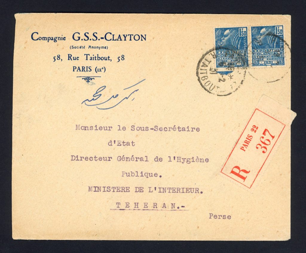پاکت سفارشی ارسالی به وزارت داخله از فرانسه