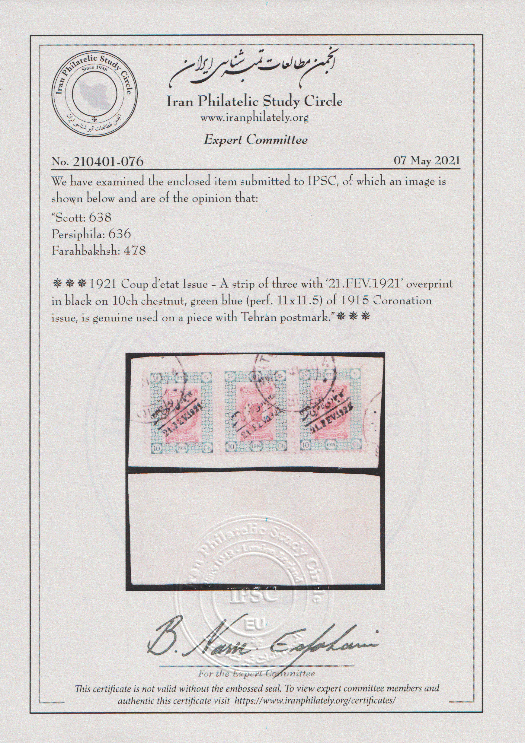” تکه پاکت با ۳ عدد ۱۰ شاهی جمادي الاخري با سرتیفیکیت IPSC ”