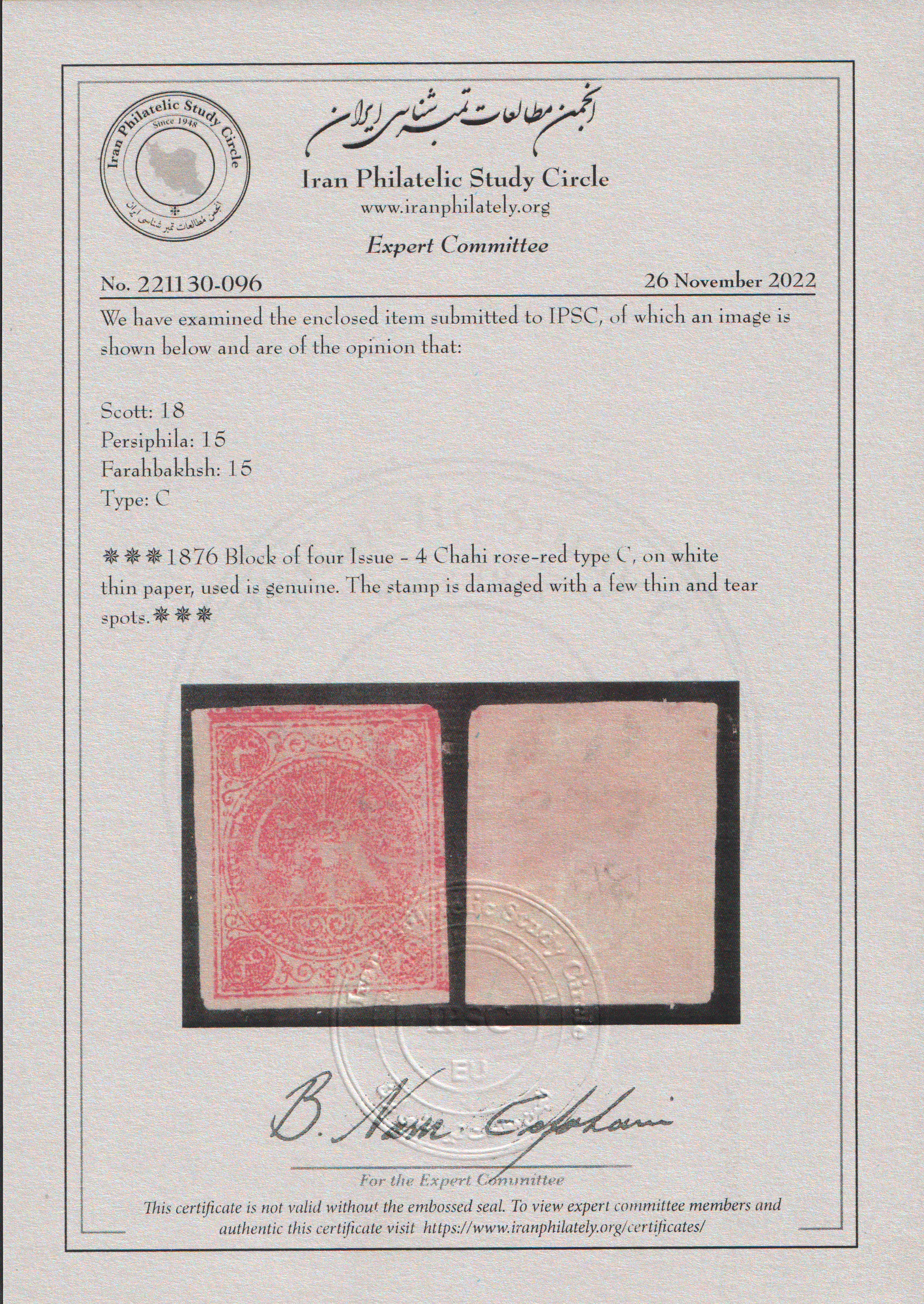 ” چهار شاهی چاپ بلوک چهارتایی و سرتیفیکیت IPSC ”