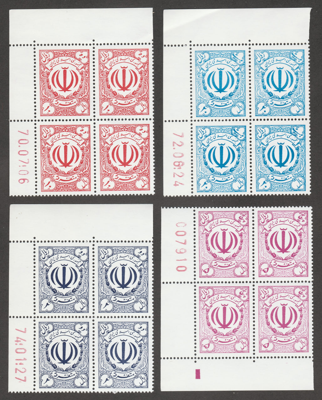 📌۴ بلوک “گوشه ورق و تاریخدار” سری تمبر مالیه سری متفرقه.