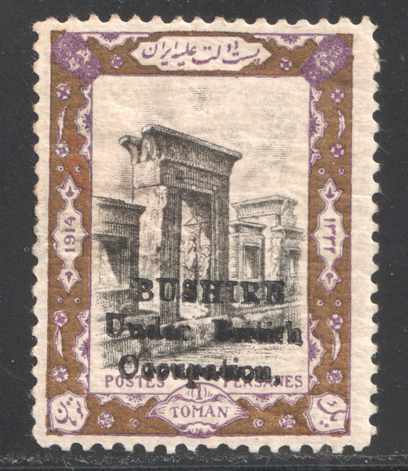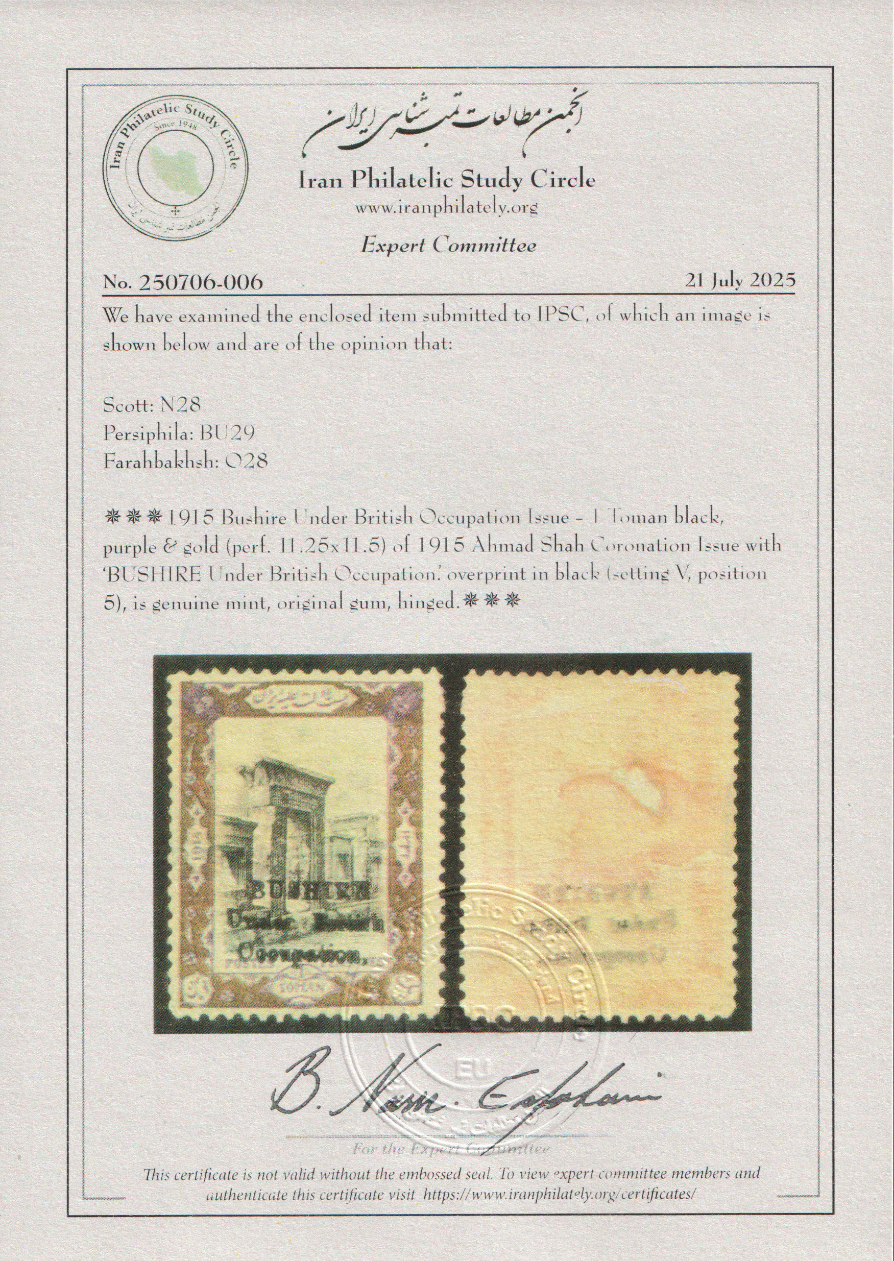 ” یک تومان با روچاپ بوشهر روي تمبرهاي تاجگذاري با سرتیفیکیت IPSC ”