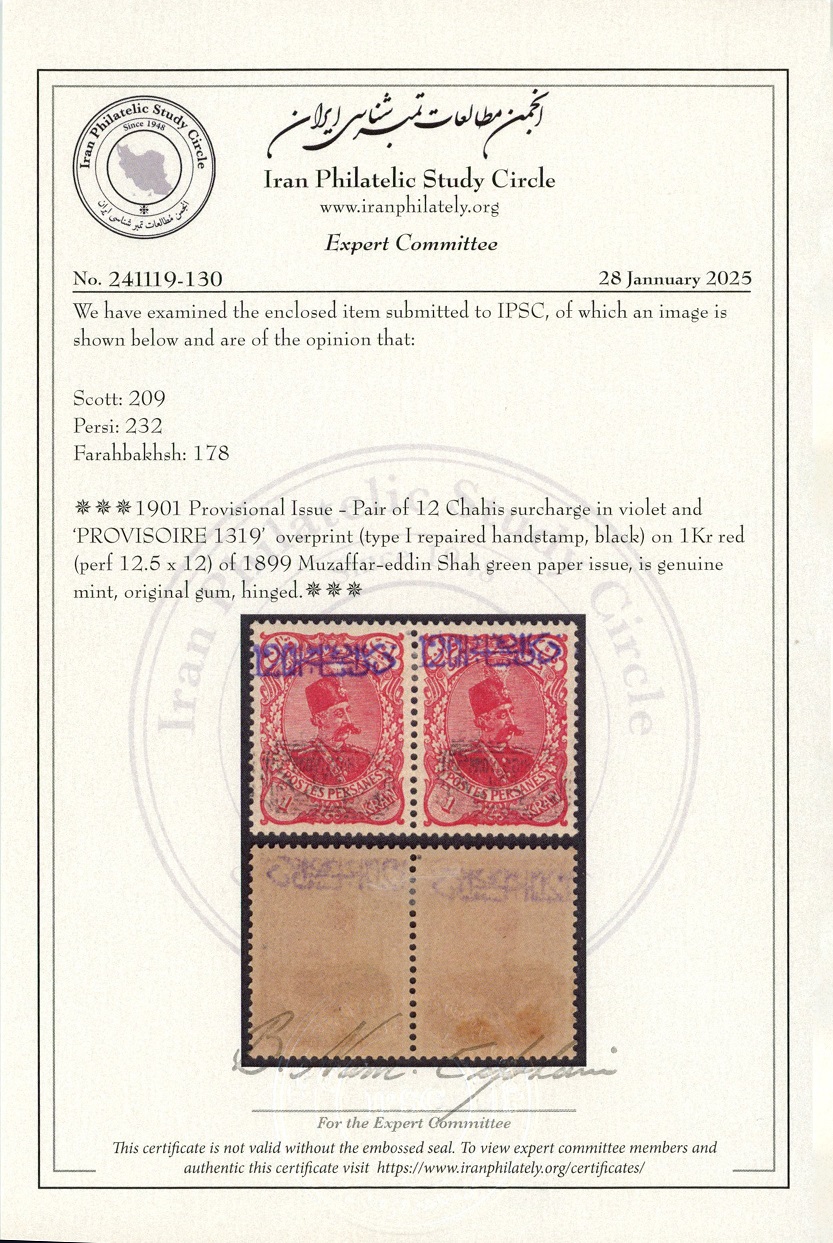 جفت 1 قران پرویزوار کاغذ سبز با سورشارژ 12 شاهی با تاییدیه
