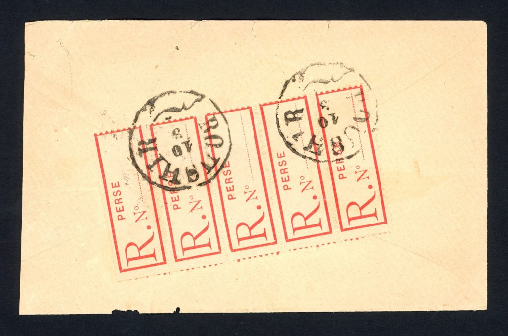 پاکت با باند 5 تایی اتیکت 1 شاهی و مهر بوشهر