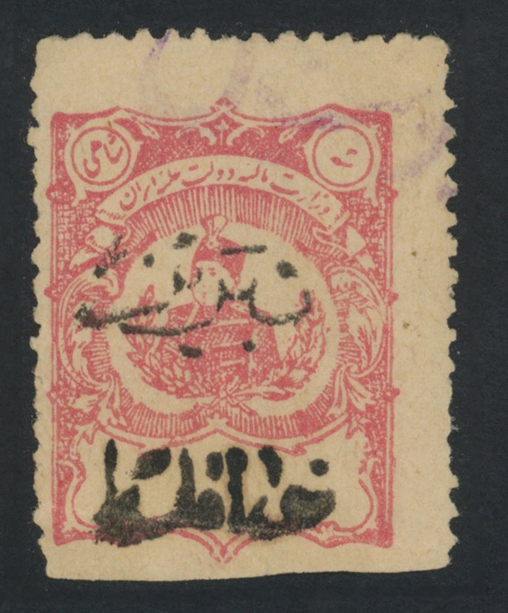 تمبر 3 شاهی نیم تنه احمدی با مهر نواقل تبریز
