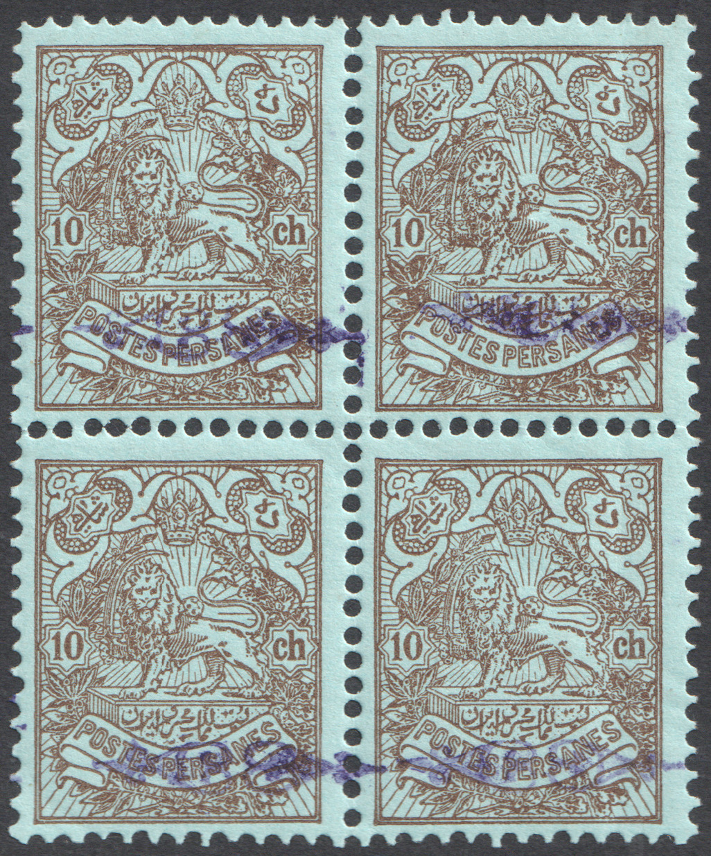 ده شاهی محمدعلی شاه با رو چاپ معروف به پروانه