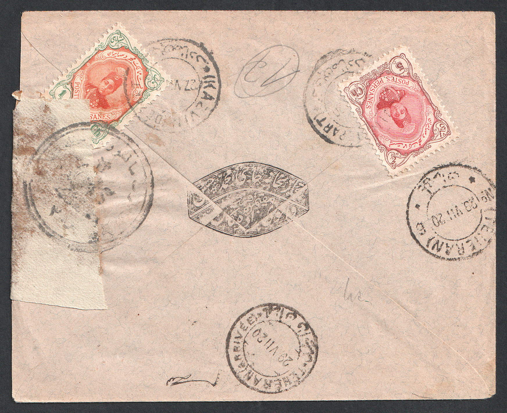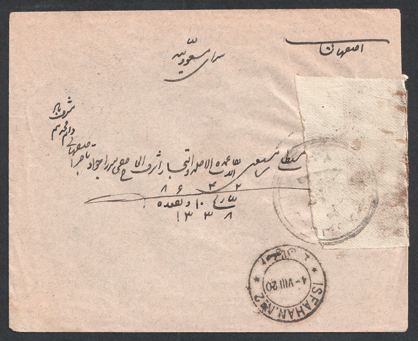 ” پاکت نامه سانسور شده از قزوین به اصفهان ”