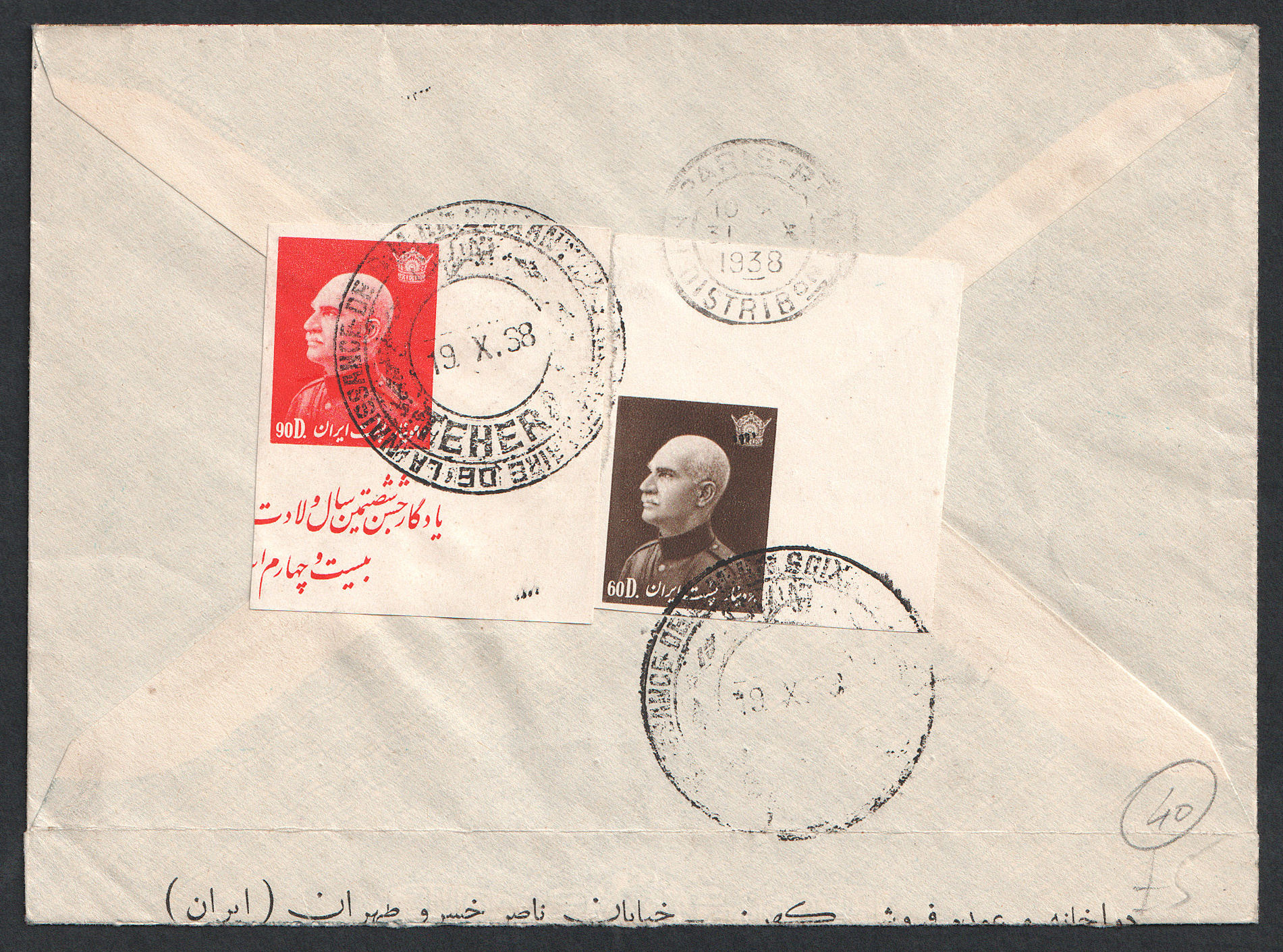 پاکت نامه با تمرهای شصتمین سال تولد از تهران به پاریس
