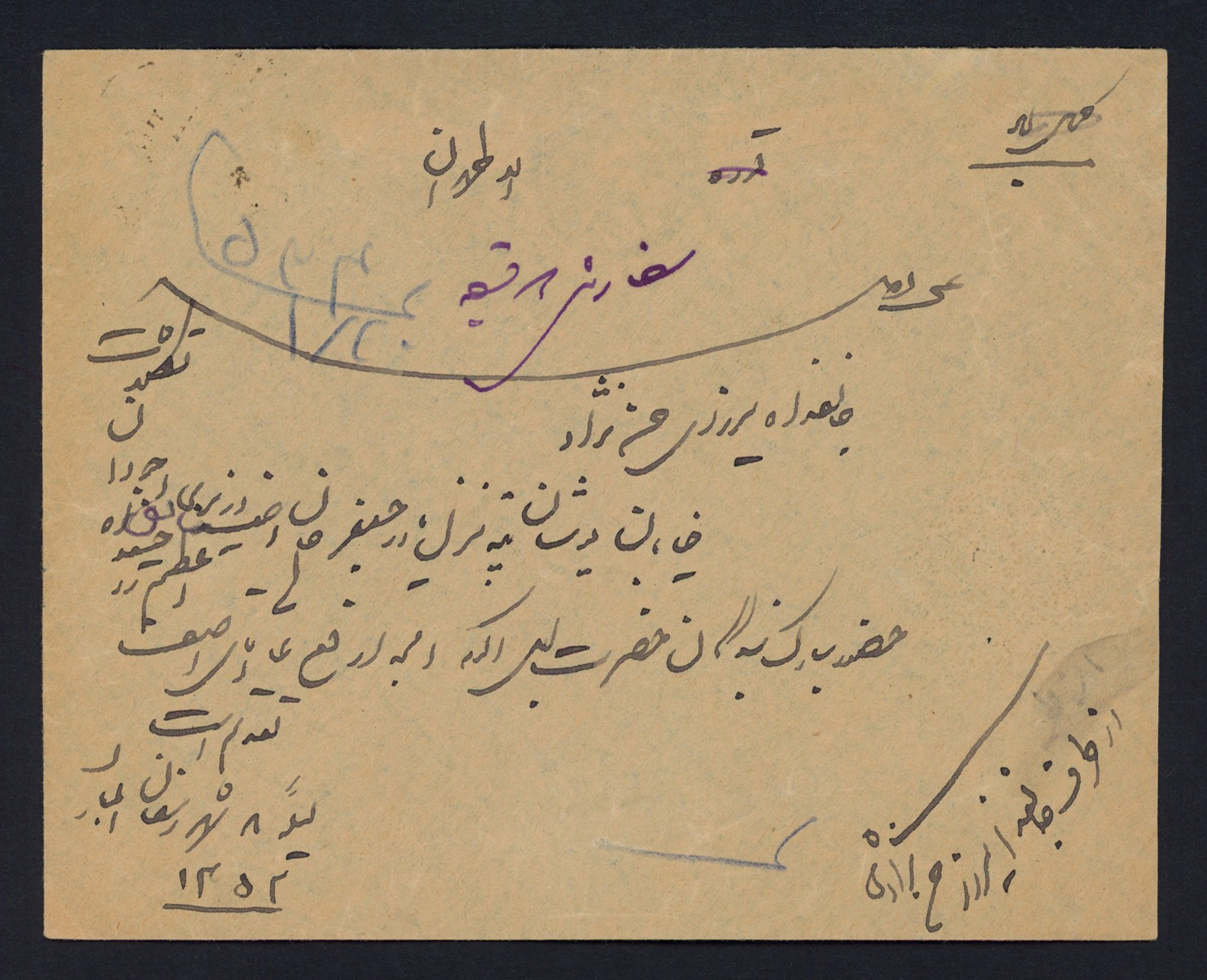 پاکت عریضه سفارشی دو قبضه با مهر قروه و ریت 24 شاهی