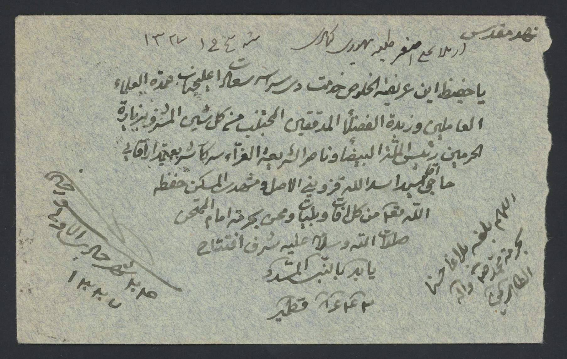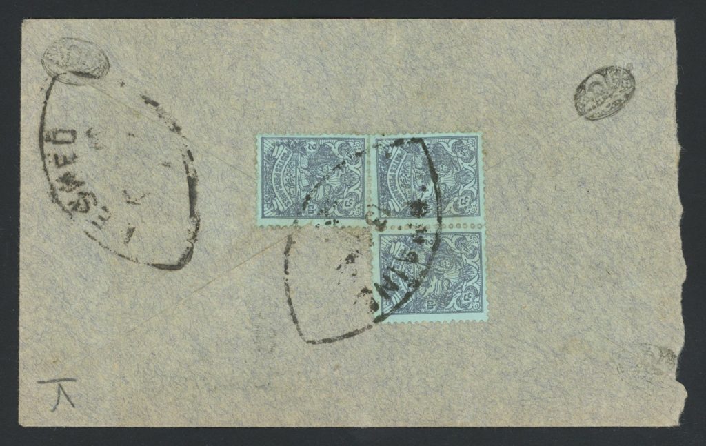 پاکت با مهر شیلدی نائین و سه عدد 2 شاهی سری محمدعلی شاه