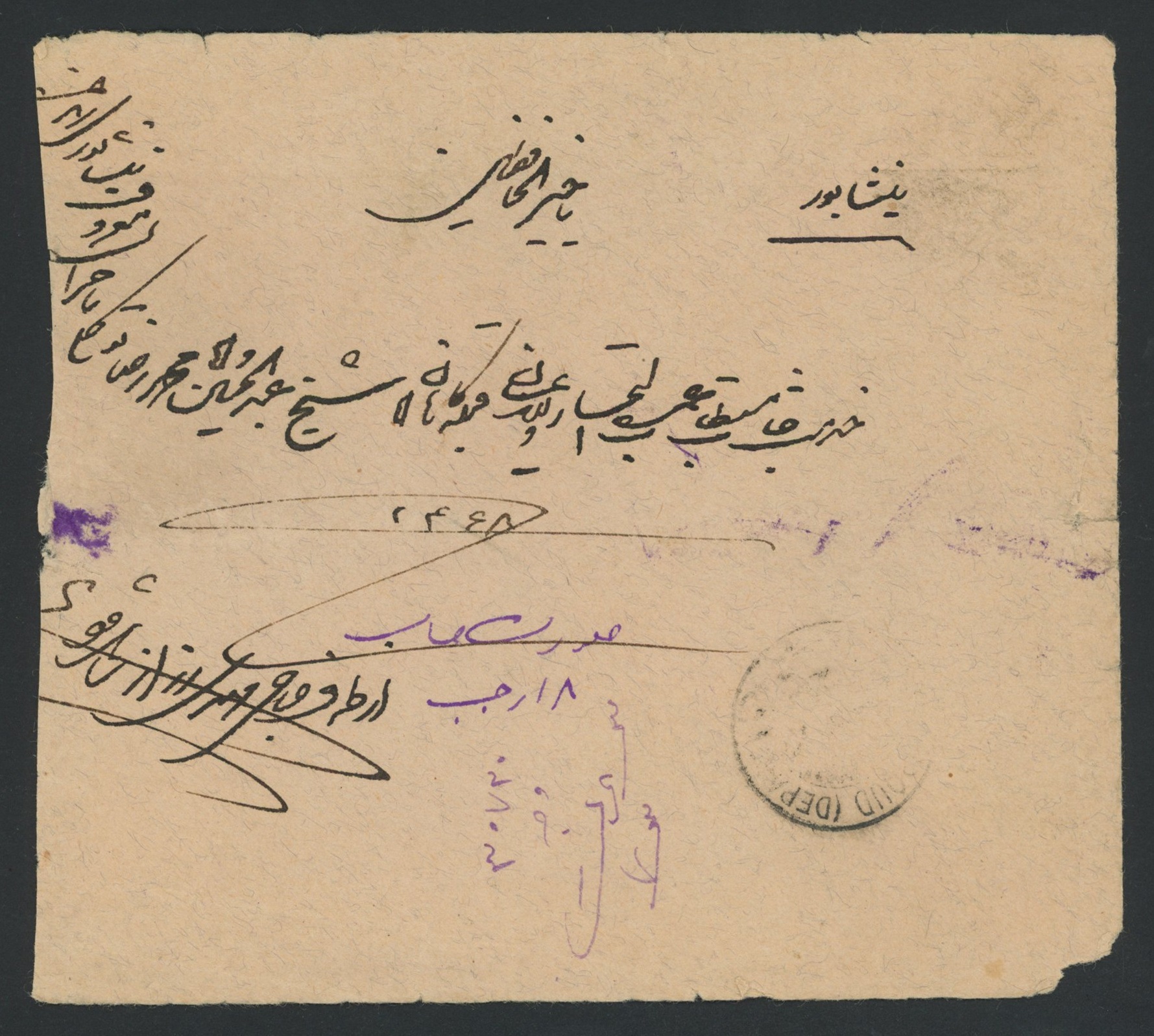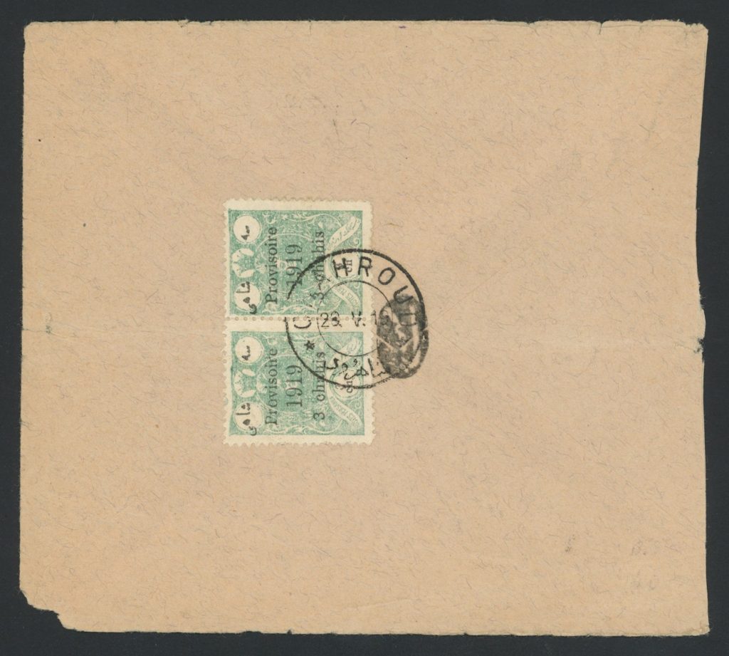 پاکت با جفت 3 شاهی موقتی 1919 و مهر شاهرود