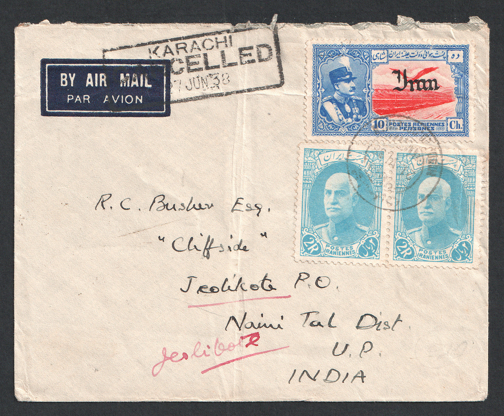 ” پست هوایی از مسجد سلیمان به هندوستان از طریق کراچی ”