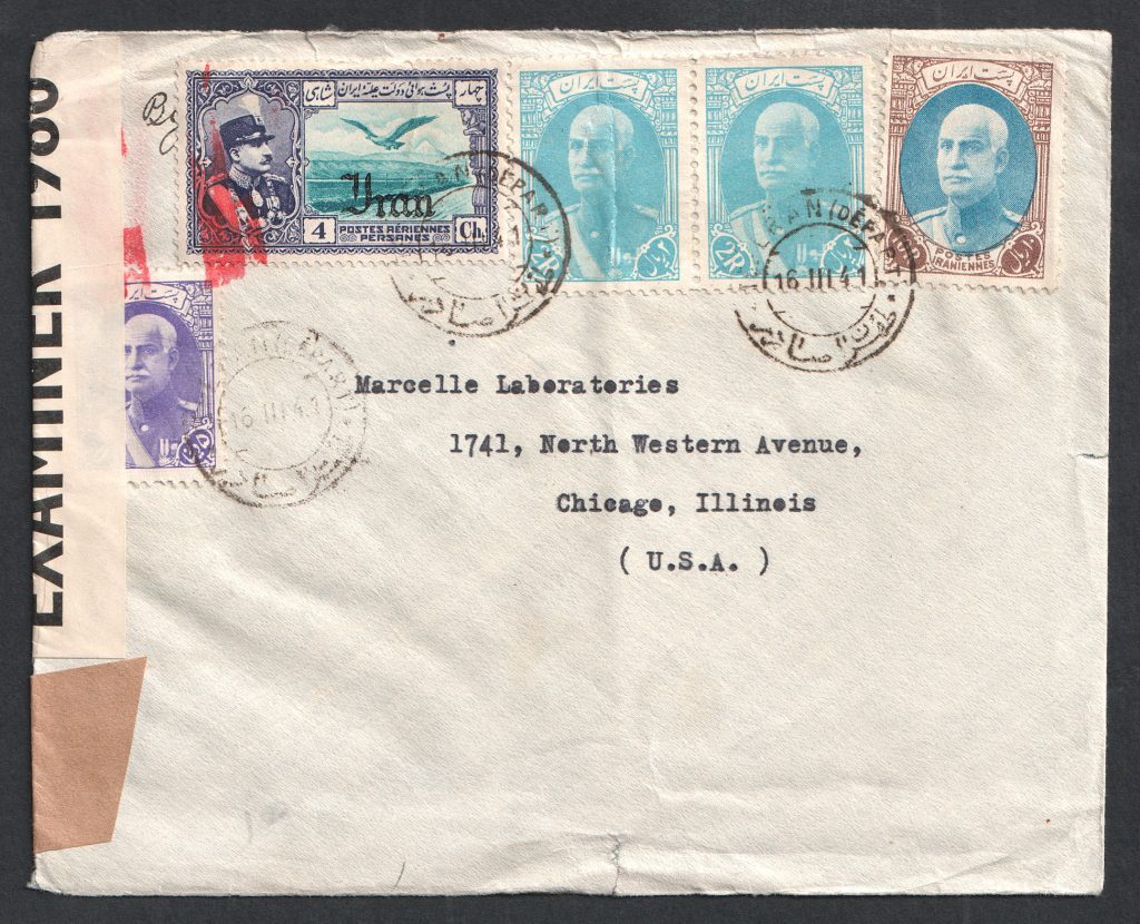 “پست سانسور شده از تهران به آمریکا با تمبر ۱۰ ریال سربرهنه با زیرنویس ”