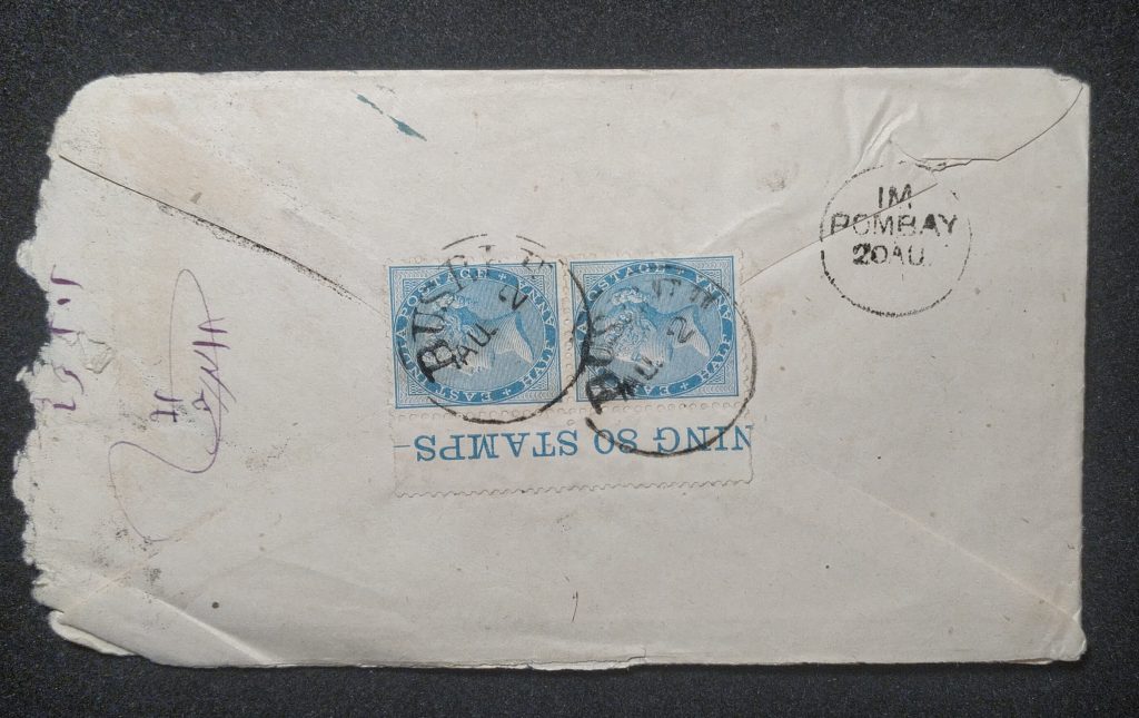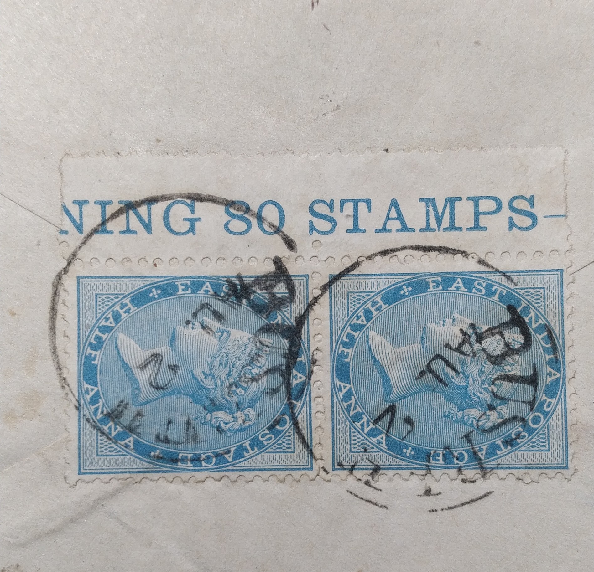با مصرف دو تمبر نیم آنه هند انگلیس