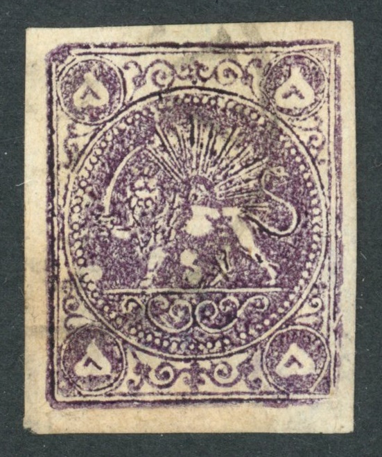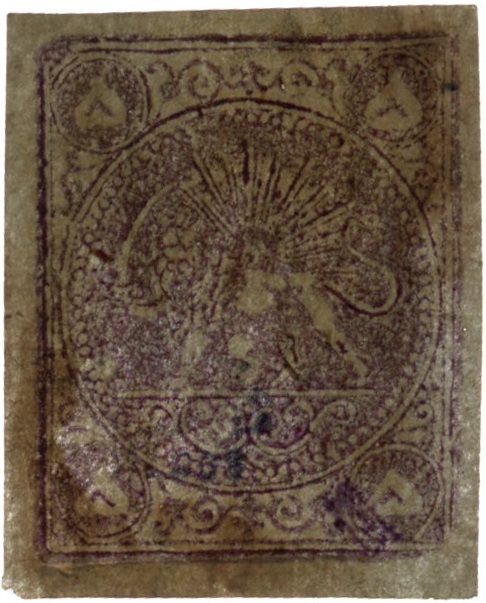 تمبر 5 قران بنفش شیر و خورشیدی با تاییدیه