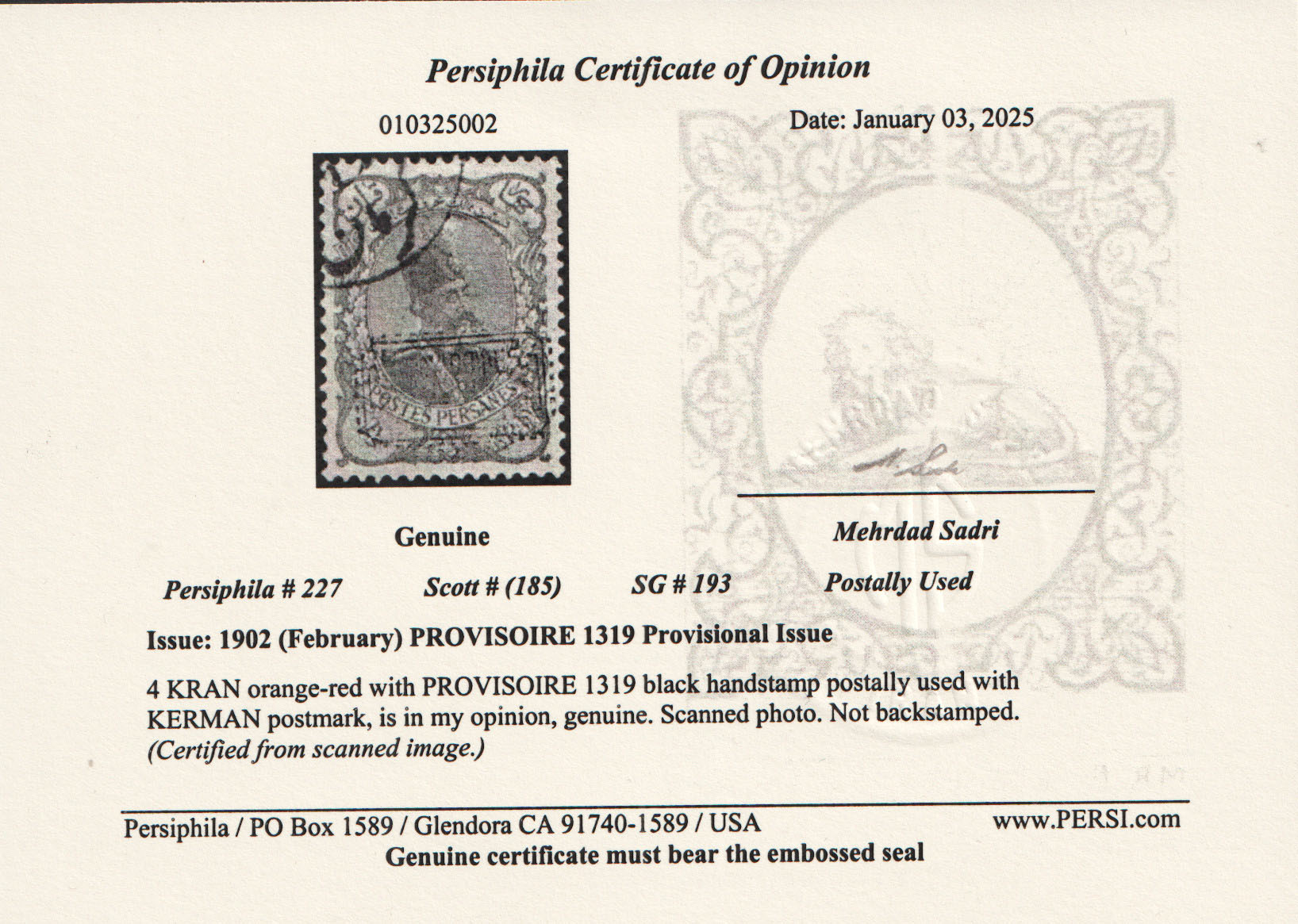 قیمت کاتالوگ IPG برای این تمبر مصرف شده  9.000.000 تومان