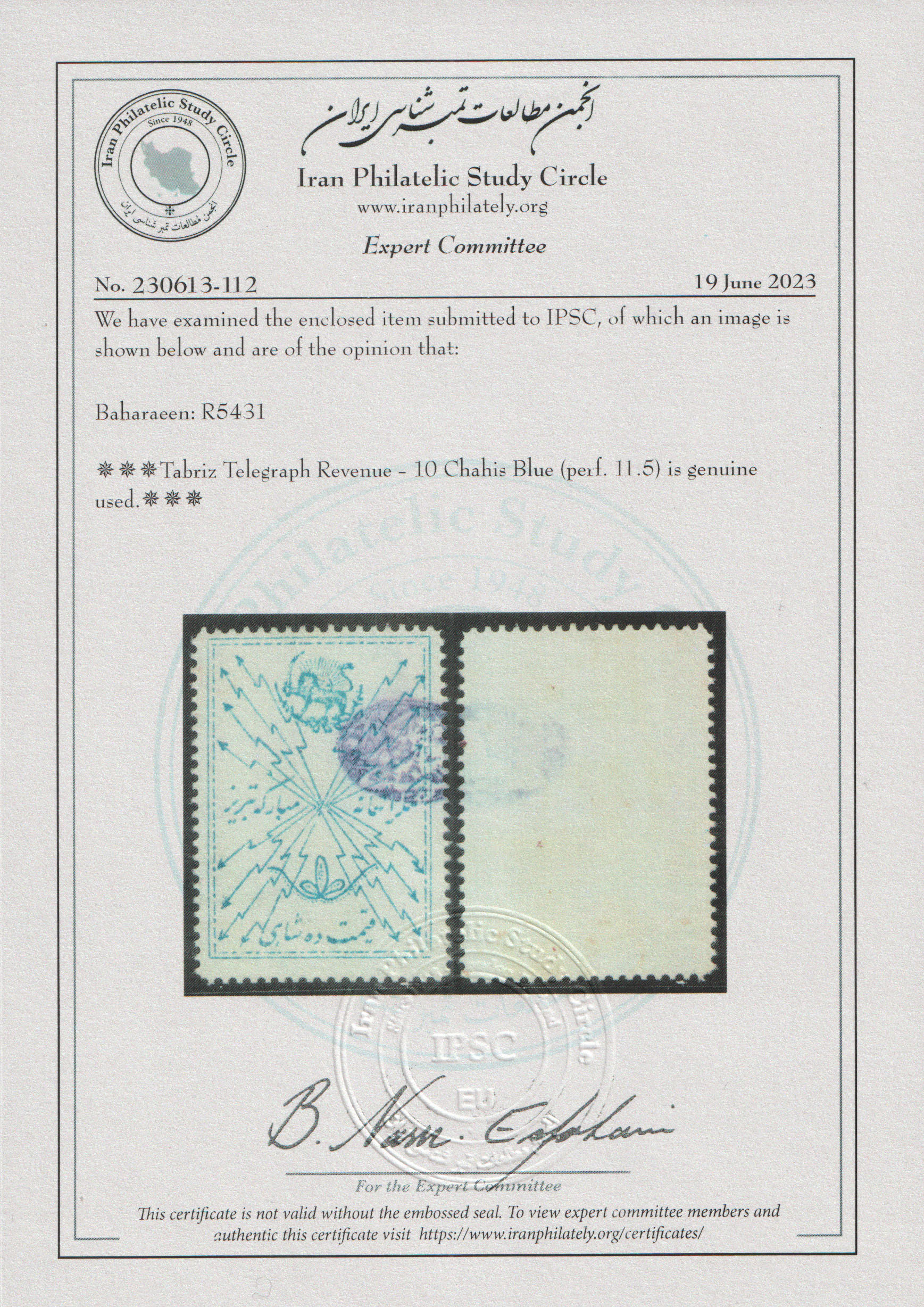 ” تمبر مالیه تلگراف تبریز با سرتیفیکیت IPSC ”