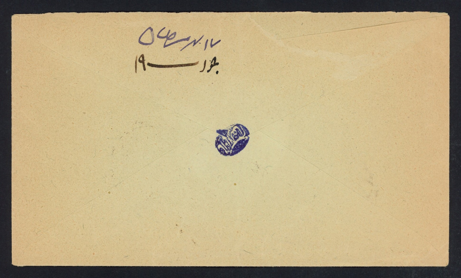 پاکت با تمبر 5 شاهی چاپ تهران حروف کوچک و مهر کرمان