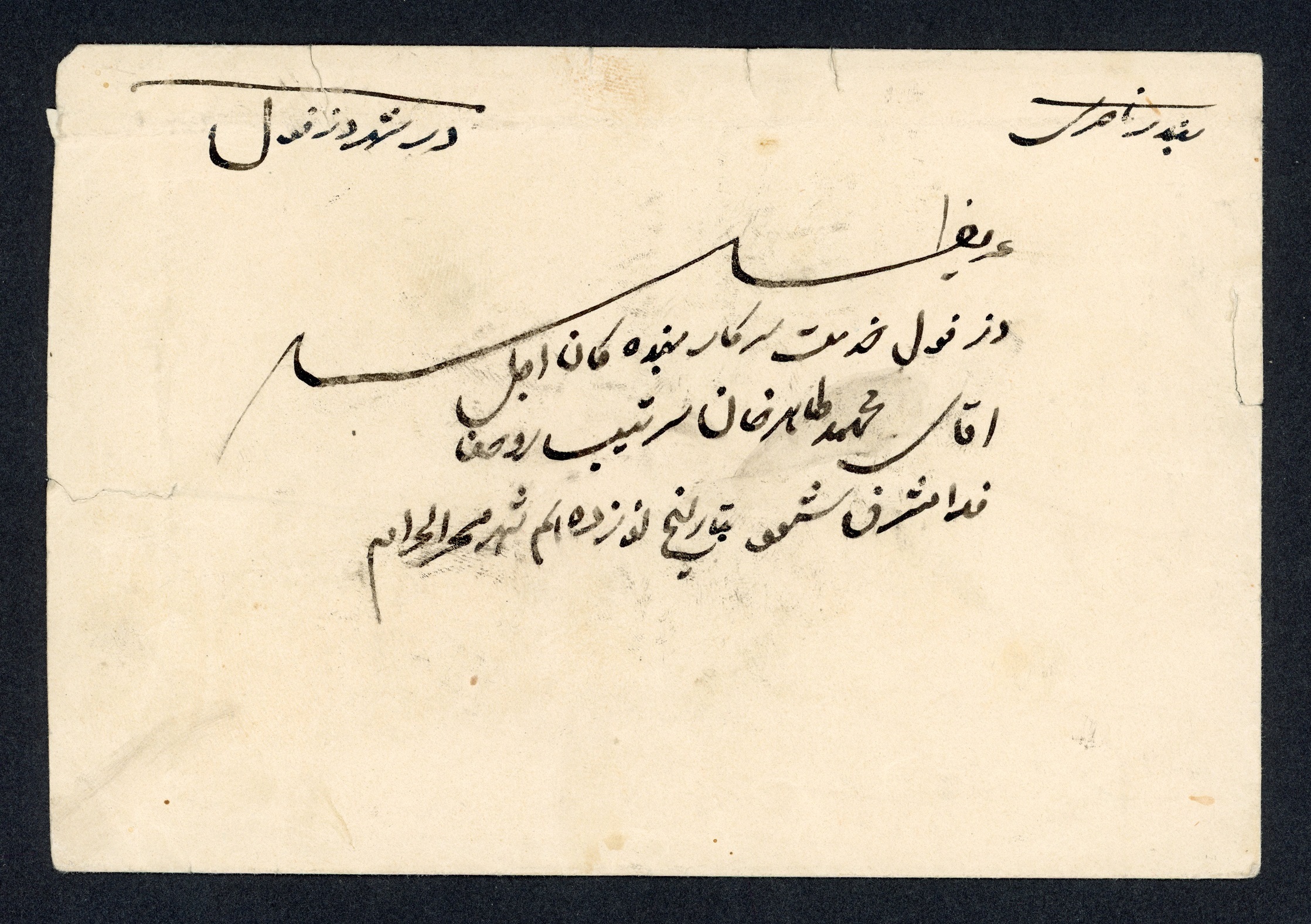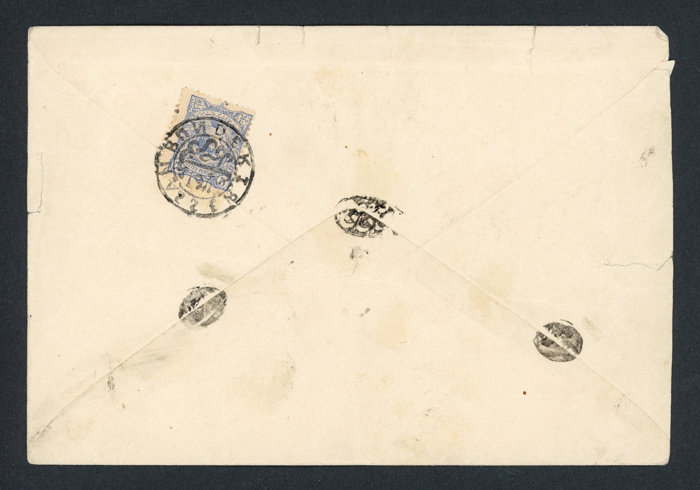 پاکت با مهر بسیار کمیاب بندر ناصری وارونه جانبی (آینه ای)