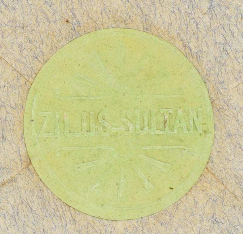 لیبل لاتین ظل السلطان بسیار کمیاب است، البته چون پاکت نامه و مهری ندارد نمی توان صد در صد مطمئن بود که لیبل متعلق به همین پاکت است و باید دست خط را بررسی و کارشناسی کرد.