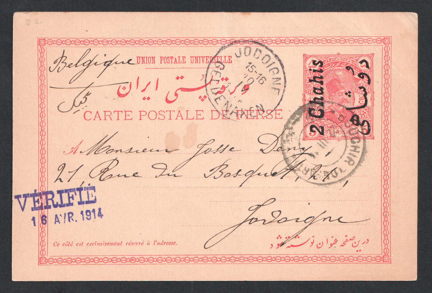 با مهرVERIFIE که به ندرت روی کارت پستالهای آن دوره دیده شده