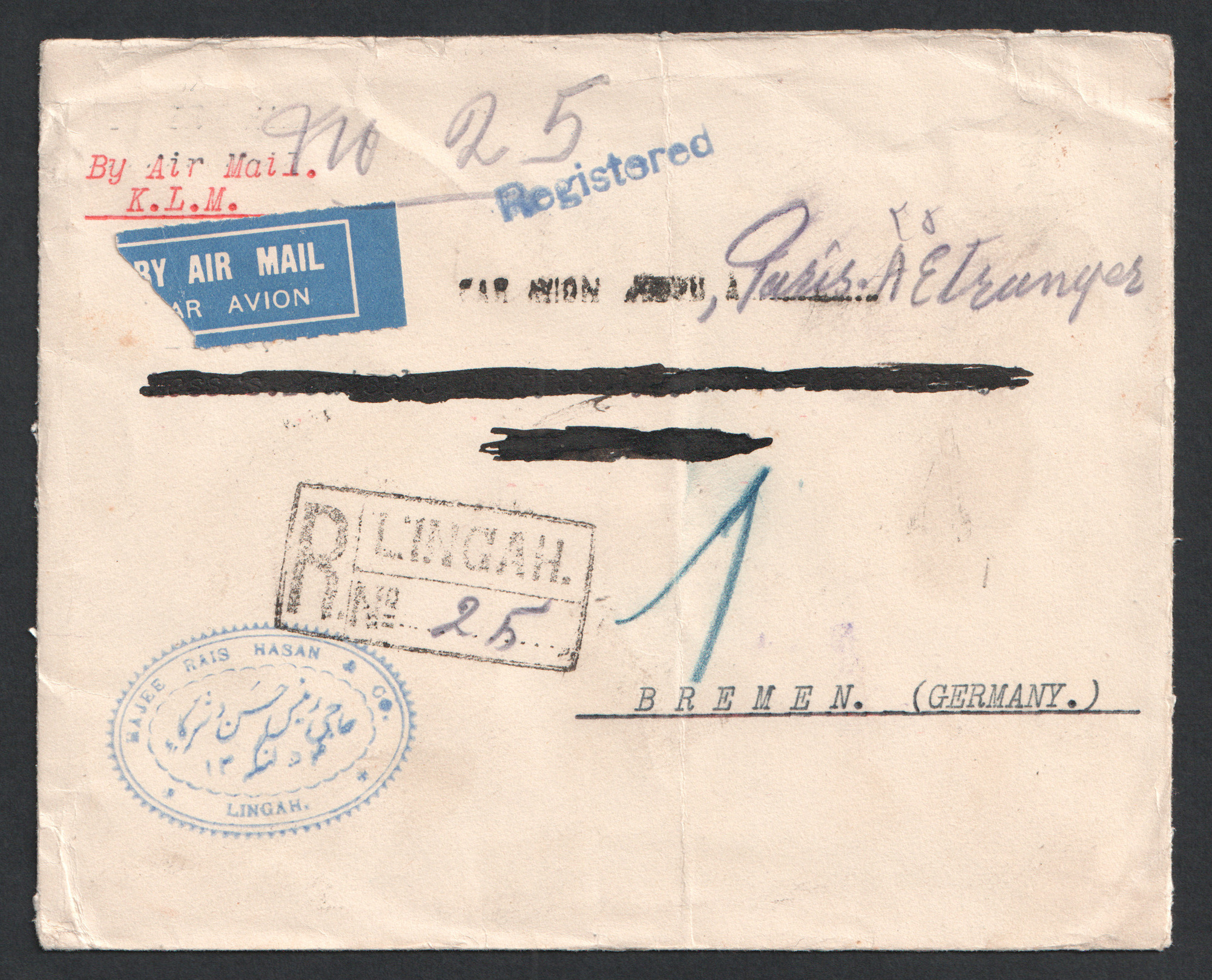 ” پست هوایی سفارشی از بندر لنگه به آلمان با استفاده از تمبر ۱ تومان ”