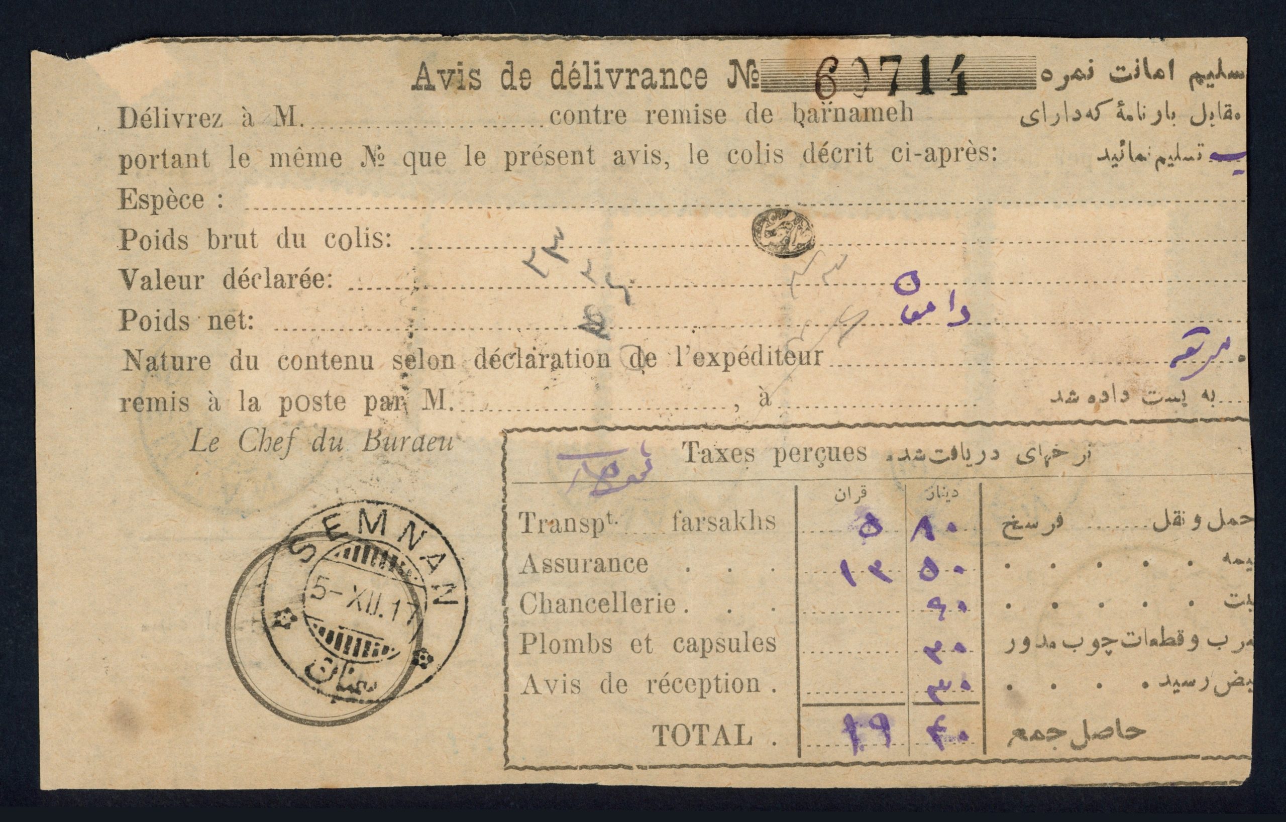 بارنامه ی کامل نیست و قسمتی از آن جدا شده.