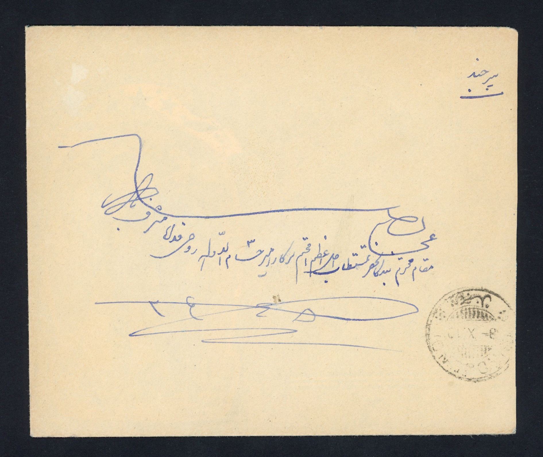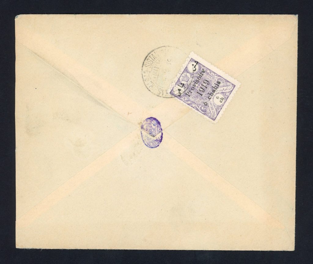 با تمبر 6 شاهی موقتی 1919 و مهر نصیر اباد سیستان