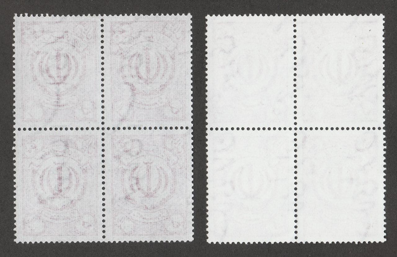 📌دو تیپ بلوک “کاغذ نازک” رقم ۵ ریال قرمز بنفش سری تمبر مالیه سری متفرقه (نسبتا نایاب)