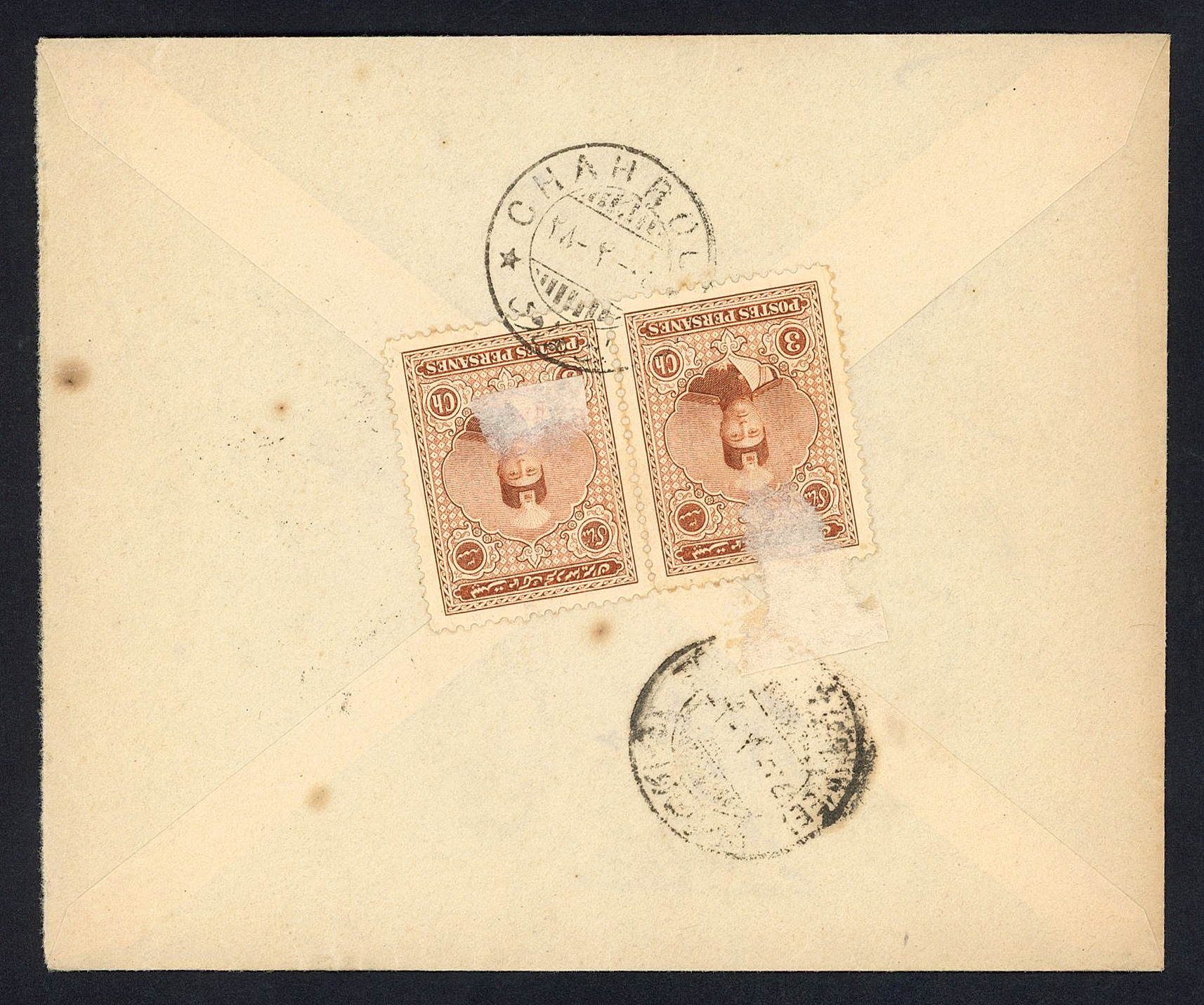 طبق قانون تمبرهای احمدی بزرگ بعد از تاریخ 1 فروردین 1305 باید صورت شاه مخدوش می شده که روی صورت شاه در این پاکت کاغذ چسباندند و قسمتی از آن بعدا کنده شده است.