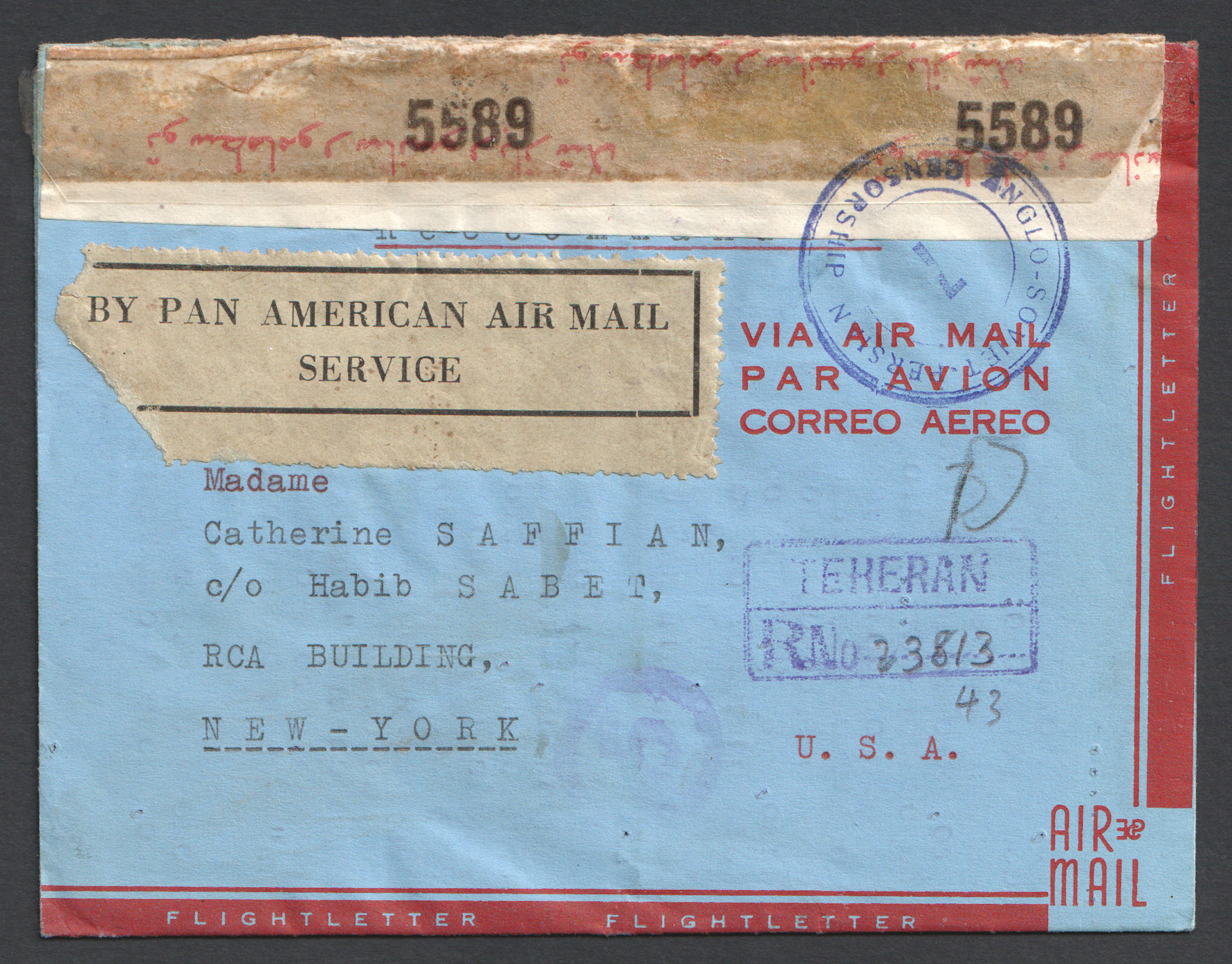 ایروگرم سانسور شده از تهران به آمریکا بسیار کمیاب