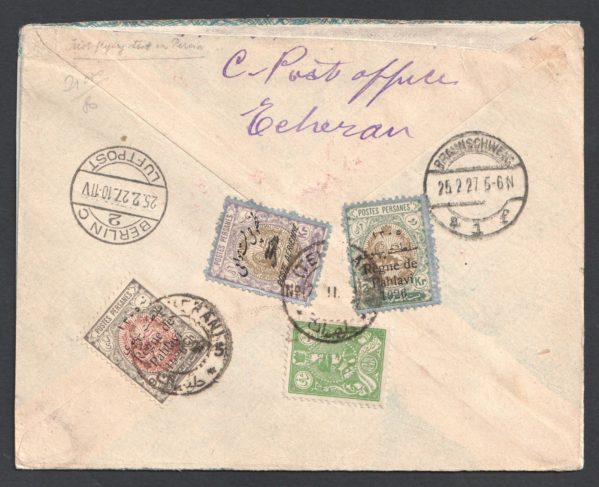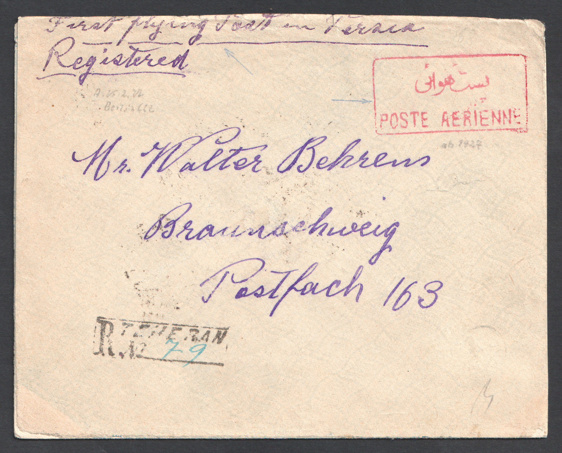” پست هوایی سفارشی از تهران به آلمان با استفاده از تمبر دوقران سلطنت پهلوی ”