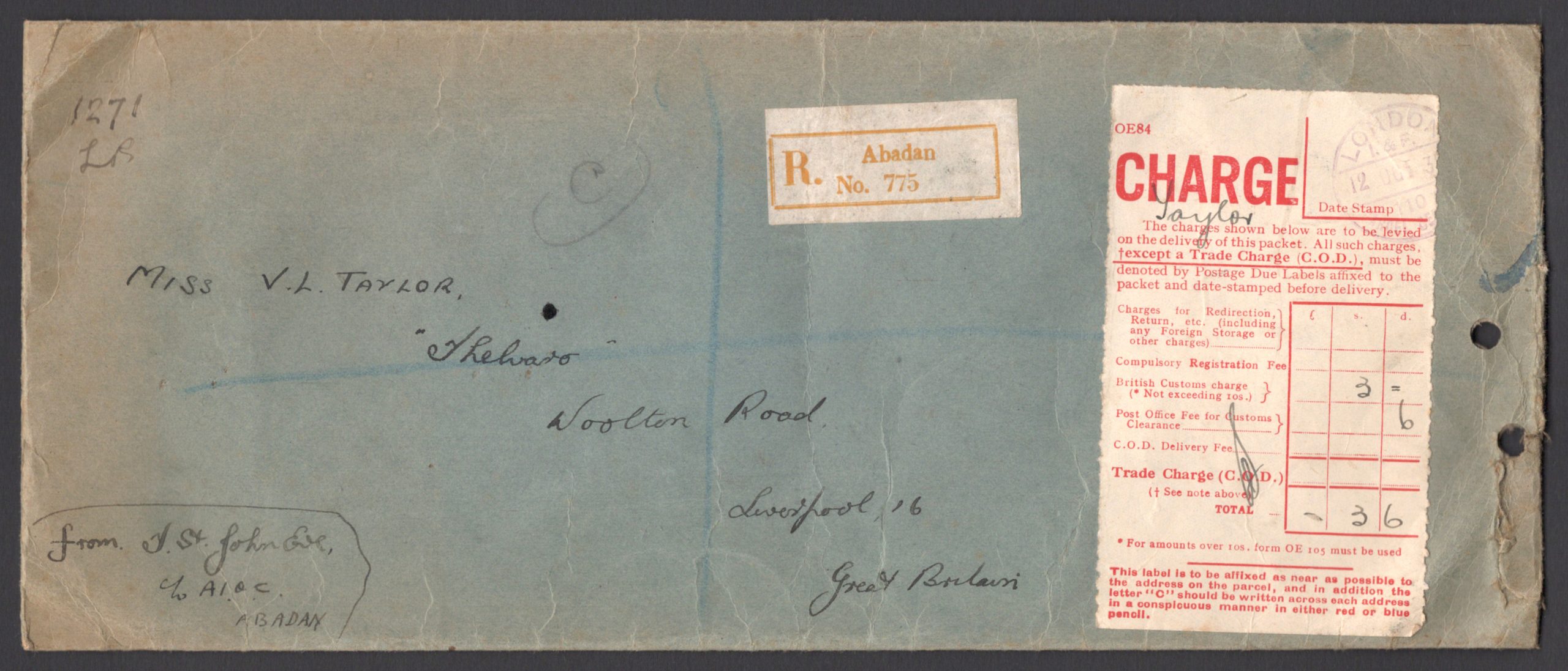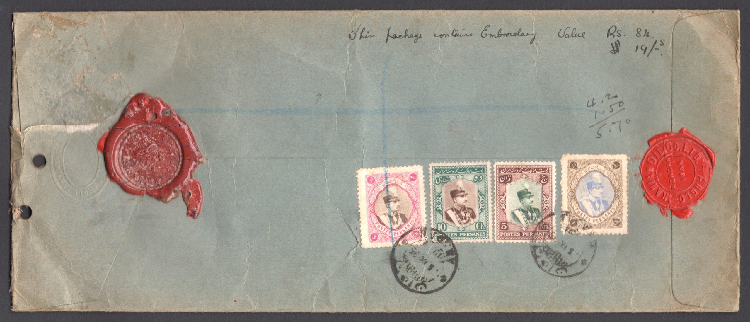 ” پاکت پست زمینی از شرکت نفت آبادان به انگلستان با مهر و موم سالم “