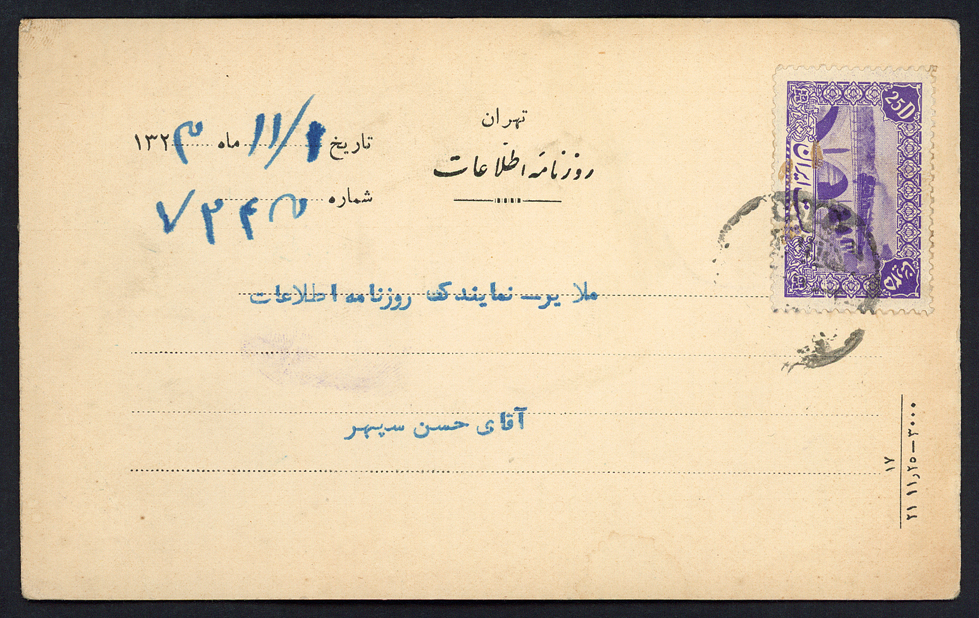 کارت پستال جالب روزنامه اطلاعات با 25 دینار سری دوم پستی