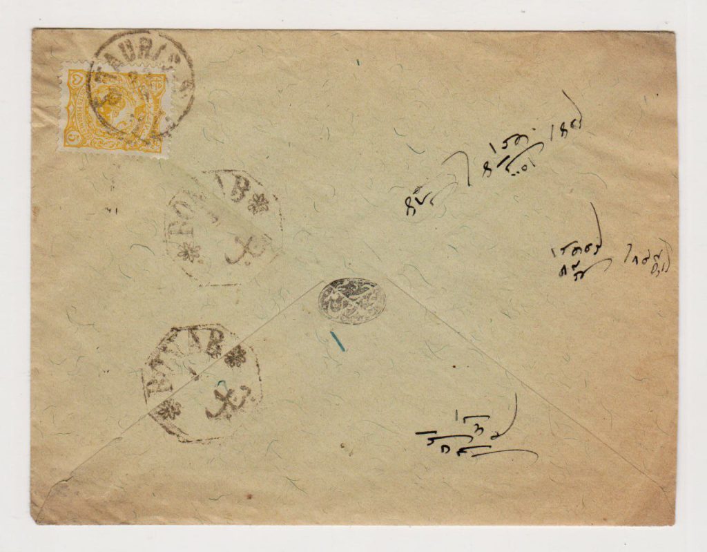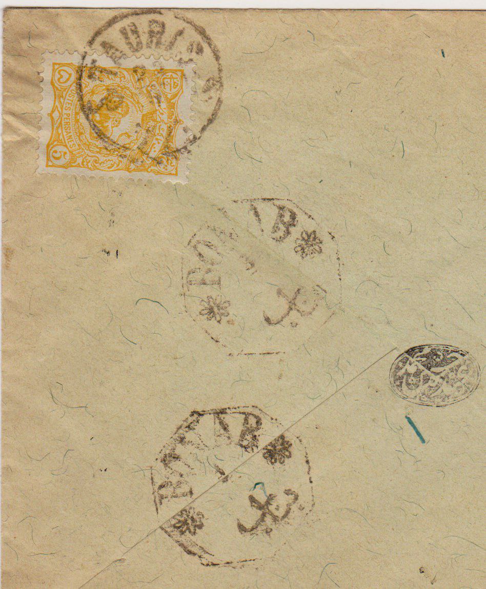 مهر کمیاب بناب ، ابطال تمبر در مقصد انجام شده که غیر معمول است .