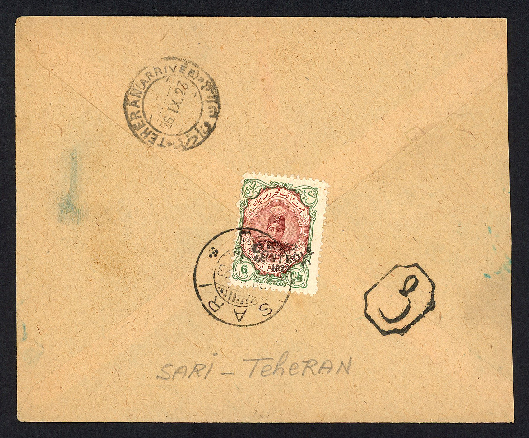 پاکت احمدی کنترل با مهر ساری و مهر صندوق هشت ضلعی