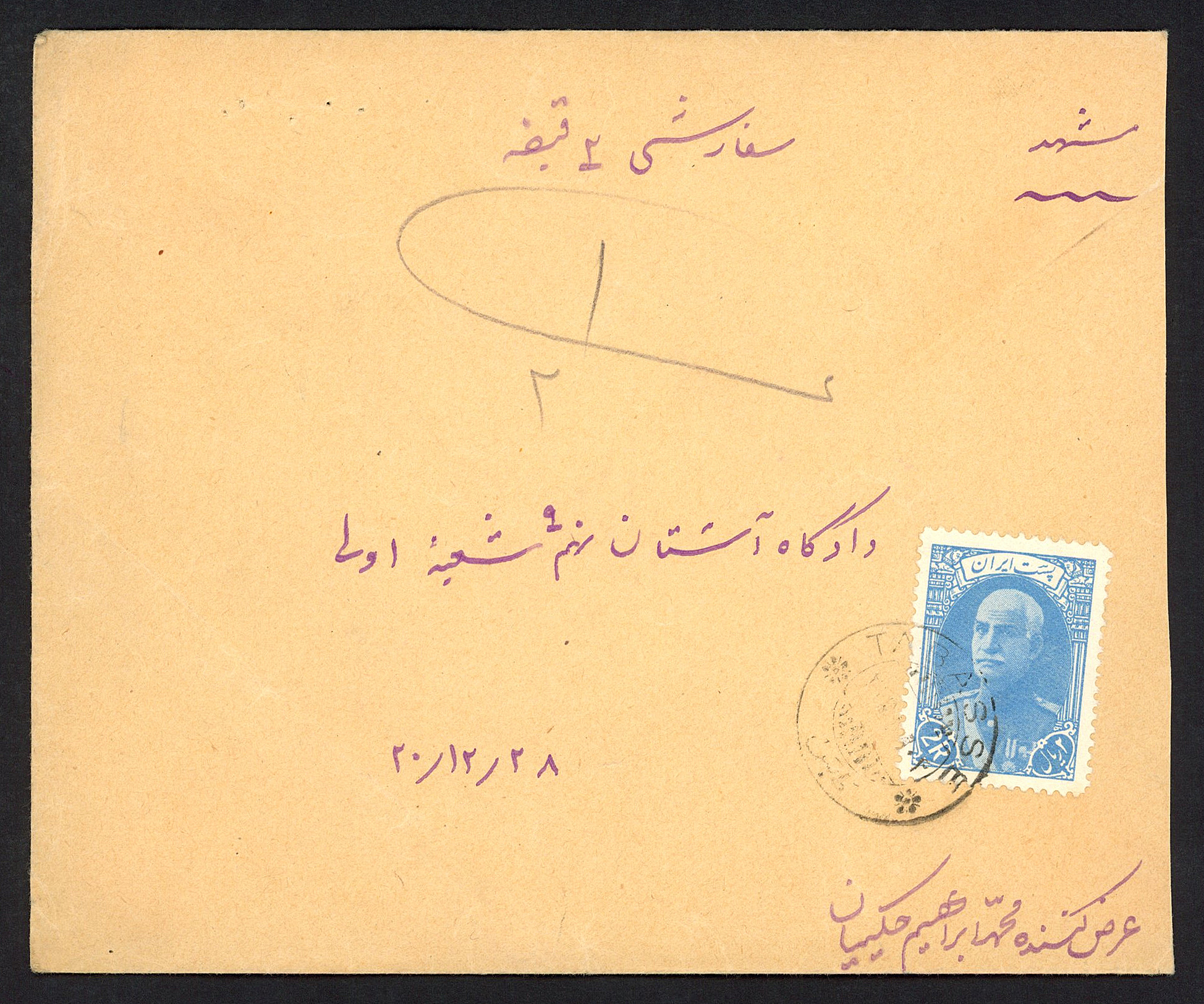 پاکت سفارشی دو قبضه با مهر کمیاب طبس